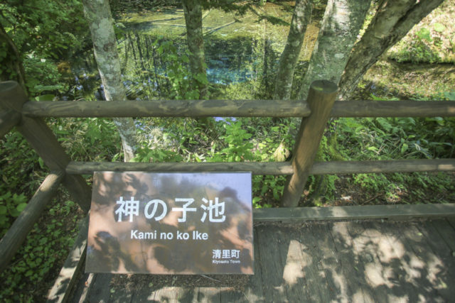 歩き始めるとすぐに神の子池から流れ出ている川が見えてきます。川を渡るとその先に神の子池が見えてきます。