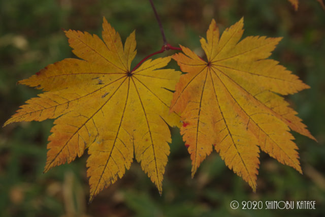 カエデの葉は寄って撮影しておきたいなと、歩きまわっていました。でもハウチワカエデの紅葉は今年きれいではなく、ほとんどがこんな感じで黄色か赤色交じりのブチ模様なのです。9月が暑すぎたのかもしれませんが、樹種によっても違うのが不思議です。ただ、今年の秋こんなに暖かだと、来年のつつじヶ原のイソツツジはきれいな花を見せてくれるかもしれないなぁと冬もまだ来ていないのに、春を想像し始めてしまいました。北海道ではこの季節の移り変わりが強烈に印象深く心に刻まれていきます。