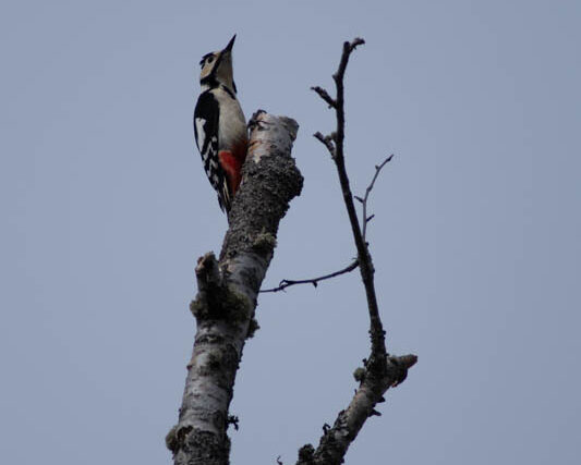 アカゲラの鳴き声が頭上から聞こえるなと見上げたら、木のてっぺんで周囲を見回していました。もう一羽近くにいて、オスメスだったのでデートだったのかな。そのうち片方はいなくなりましたが、もう一羽は多分15分以上、同じ場所で辺りの様子を見まわし続けていました。どこか近くで営巣の準備を始めているのかもしれません。外で作業し続けていると、たまに動物たちが訪れてくれて、面白い姿を見せてくれます。それを目撃するためだけにずっと外にいられないですが、次いでに見かけることができると嬉しくなりますね。