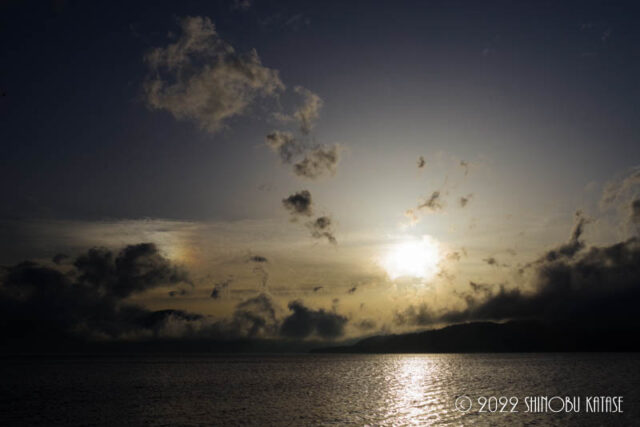 午前中は天気が悪かったのですが、午後から少しずつ晴れ間が見えてきて、来年のための薪づくりでした。作業を終えて、夕方、雲がどんどん流れていく湖畔で静かにたたずみながら、オジロワシが遠くを飛んでいるのを見ていると、沈んでいく夕陽の左側に幻日がほんとに一瞬だけ現れて消えていきました。足元で響き渡る波音がとても心地よく、結氷してしまう冬は冬で美しいですが、やはり屈斜路湖は外輪山に囲まれたこの大きな湖から奏でられる足元の波音が、最大の魅力な気がします。