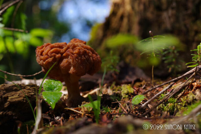 トドマツの森の中を歩いていると、足元にアミガサダケみたいなのがあるな、でもなんか形が違うなと、とりあえず撮影しておいて帰宅後に調べてみると、シャグマアミガサダケという猛毒キノコでした。近くの森ではアミガサダケがでていたと話を聞いていたので、ちょっとぞっとしてしまいました。明らかに形は違いますが、図鑑によると死に至るようなので、間違えてしまうと大変なことになります。キノコや山菜採りはやはり十分に注意したいですね。
