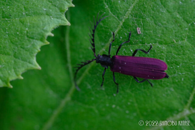 今日も天気がよかったので、昼間外作業をして夕方今日の1枚と撮影しようと辺りをウロウロしていると、フキの葉の上に虫がいるなと思ったら、触覚がまるでまつ毛みたいじゃないですか。大きなつけまつ毛だなと思いながら撮影して、ホタルのような体つきなので、昆虫図鑑でホタルの近くを探してみると、名前を見つけることができました。なかなか他に同じような触覚を持ったものもいなかったので、比較的簡単に見つけることができました。発光しないホタルの1種です。発光するヘイケボタルもそろそろ出てくるのかもしれません。今年はまたホタルを見に行く機会を作りたいですね。