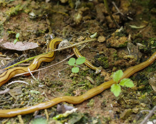 外で作業を始めようとしたら、足元に何か細長いものがあるな、ヘビかなと思ったら、全然逃げないので、よく見てみたら、ナメクジのように氷面がヌメヌメしています。ミミズか?と思ったけど、明らかに様子が違うので、さらによく見てみたら、頭がシュモクザメのような奇妙な形をしています。なんだこりゃ?!と新しいものを発見して、その見た目の不快さもあって久しぶりに興奮してしまいました。調べてみるとコウガイビルという扁形動物というプラナリアと呼ばれる生き物のようです。長さは40㎝ほどあってとにかく気持ち悪かったですね。コウガイビルはそのまま地面の中に隠れていきました。新しい発見はやはり面白いですね。