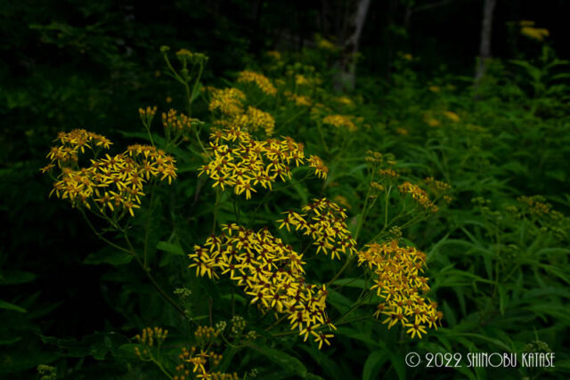 【日記】8月8日:ハンゴンソウの花が咲いています 日記 - Diary - 2022.08.082022.09.23 お盆の時期が近づくとハンゴンソウの花が咲き乱れます。オオハンゴンソウのように群落にはならないですが、それでも生えているところでは多少の群落になっています。屈斜路湖畔ではエゾシカが多く歩き回っていますが、ハンゴンソウはシカに食べられないので、群落になるのかもしれません。道路沿いでも見ることができますが、森の中でこの黄色の花が見えると映えていてきれいですね。