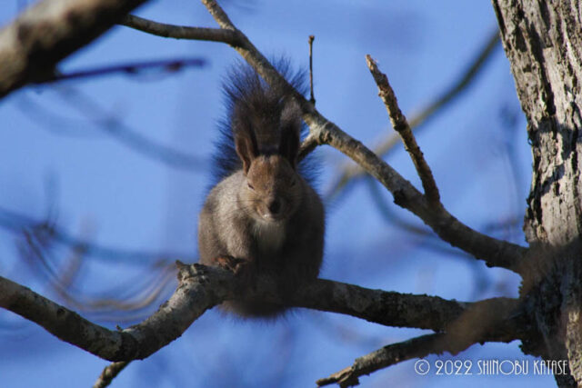 【日記】12月4日:またリスはカエデの木に来ていました 日記 - Diary - 2022.12.042022.12.16 ほんと毎日食べててよく飽きないですね。確かに今年は楓の種がたくさんついているので、嬉しいんでしょうね。今日は太陽の日差しもポカポカしていて、そのうち木を移動して、日当たりのいいところで、少しウトウトしている姿を見ることができました。でもすぐにどこかへ行ってしまいました。巣の中で寝ようって思ったのかもしれないですね。