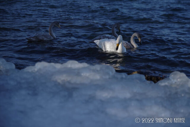 【日記】12月20日:オオハクチョウがくつろいでいました 日記 - Diary - 2022.12.20 最近風が強かった屈斜路湖ですが、今日は少し風も弱まり、その分、朝はしばれていました。しぶきで凍った湖畔の向こうの浅瀬ではオオハクチョウたちがプカプカ浮かびながら、湖底の水草を食みながら、親子でくつろいでいました。ここ数日夜の天気もよく星空がきれいに見られる日が続いています。後数日で今年も終わってしまいますが、今年1年を振り返りつつ時間を過ごしていきたいですね。
