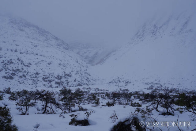 周囲はどれくらい積もったかなと見て回ってきました。つつじが原のハイマツがまだ埋もれていません。ただ例年埋もれ終わったくらいで春になっていくので、今年は逆に一発目の雪でここ4.5年の一冬分に近い雪を降らせていったことになります。。。勘弁してほしいです。。そして、屈斜路外輪山を覆う標高の低い雲に覆われ続けています。あの雲の中では着々と霧氷というか、もう樹氷が成長しているはずです。雲が無くなった瞬間が楽しみですね。