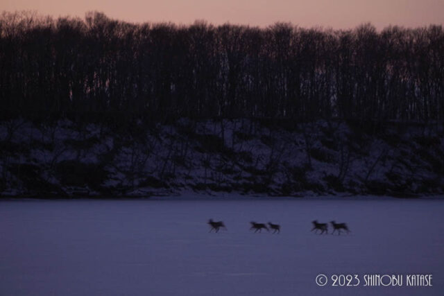 【日記】1月11日:結氷したシラルトロ湖をシカが走っていました