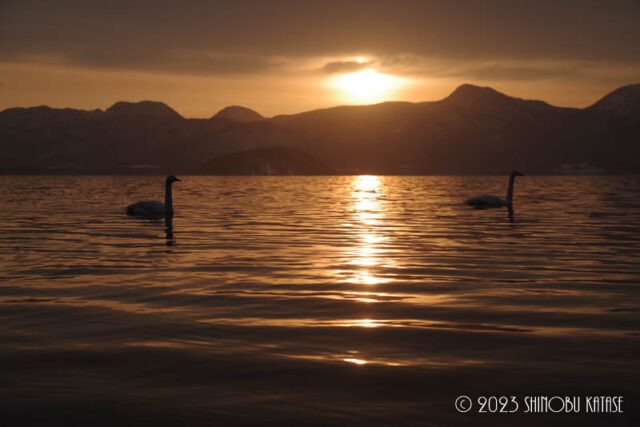 昨日よりもさらに昼間の気温が高くなりました。午後からは薄い雲が空全体に広がってしまったものの、それでも暖かいせいで空気が全体的に霞んでいるのが分かります。まるでもう春になってしまったかのようですが、また明日からプラスの気温にはならないようです。この気温の上下動は勘弁してほしいですね。今日の屈斜路湖はまた全然凍っていませんが、徐々に寒い日が続くと早朝に張る氷が広がっていきます。これからどうなっていくのか楽しみですね。