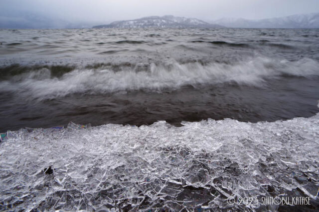 【日記】1月22日:薄い氷が寄せられていました 日記 - Diary - 2023.01.22 屈斜路湖は天気予報が良いけど、午前中晴れて北風がある程度吹くと、予報に反して午後から天気が悪くなってきます。今朝は屈斜路湖に薄い氷が広がっていましたが、午後から風が吹いてきたと思ったら曇ってきて、張っていた氷は夕方には湖畔に寄せられてきていました。また風の無い寒い朝があれば氷は広がっていきそうですね。これからの屈斜路湖は日々表情が違うので、見るのが楽しみですね。
