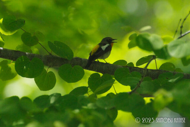 朝は木の高い場所でさえずっている声だけが聞こえて、姿を見ることができなかったのですが、午前中は出かけていて、お昼ごろ帰ってくると、同じ木のもっと下の方まで来て虫を捕まえている姿を間近に観察することができました。そしてクマゲラの鳴きまねもしていました。以前もクマゲラの鳴きまねしているのを見たことがありますが、どうして声をまねるのでしょうか。というか他の鳥の声をまねているのを見たことないのですが、他の鳥の鳴きまねをすることもあるのだろうか。