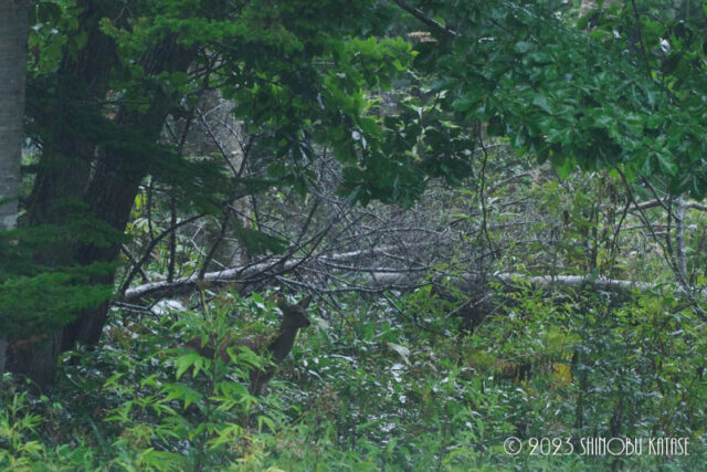 昨日夕方に止んだ雨は今日になってまた降ってきました。1日結構強い雨が降り続けていました。ふと外を見ると、こんなに雨が降っている中でもビシャビシャになりながらシカたちがウロウロしていました。だんだんと下草も勢いが無くなってきて、木々の葉も秋に向かい始めたので、シカたちの食べるものが少なくなってきているのかもしれません。夜に運転していても、車通りが少なくなってきているので、シカをよく見るようになってきました。十分気を付けて運転していきたいですね。