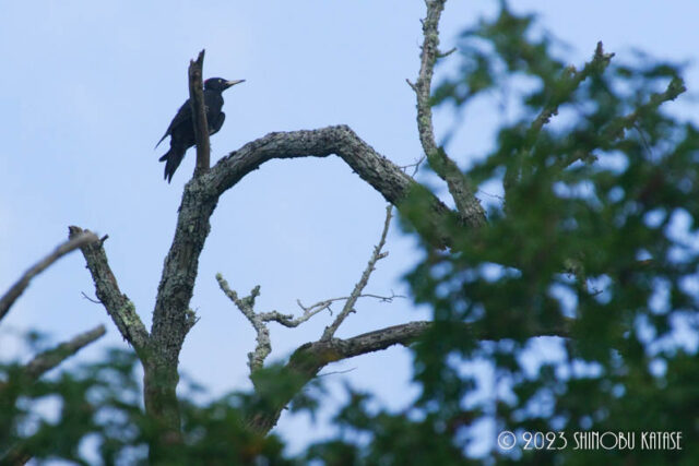 【日記】9月16日:久しぶりにクマゲラを見かけました 日記 - Diary - 2023.09.16 段々と涼しくなってきたので、小鳥たちが群れで飛び回り始めたなと先日から思っているのですが、それと同時にクマゲラの鳴き声も聞いてはいたものの、姿を見ることができませんでした。でも今日は日が傾き始めた頃にクマゲラの鳴き声が聞こえるなと、外に出てみるとすぐ頭上の木のてっぺん辺りで休憩している姿を見ることができました。しばらく休憩していましたが、そのうちまた飛び去っていきました。