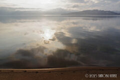 湖畔の岩や枝にしぶきがかかり、氷が成長し始めていました。先日ほどの白波ではなかったですが、今日も波音が聞こえる程度の波がたち、しぶき氷が見られました。本当は太陽が沈む時間だったので、夕陽が当たってきれいにならないかなと思って湖畔に出たのですが、残念ながら雲が湧いてしまって氷が色づきはしませんでした。その代わり寒そうな感じは出ていますかね。ただ予報だと、来週は天気も崩れて、また温かくなるようなので、きっと解けて消えてしまうでしょう。この時期のしぶき氷は凍っては解けてを繰り返していきます。