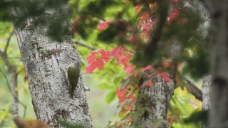 家から窓の外を見ていると、空はどんどん曇ってきて今にも雨が降ってきそうな中、キジバト、アカゲラ、シジュウカラ、ゴジュウカラ、コゲラなど次々と前の目の前の木々を飛び回り始めました。アカゲラなんて5,6匹は飛んでいたと思います。静かに佇んで鳥たちを見ていると、一番最後にヤマゲラが登場したと思ったら、近くの色づき始めた木に止まってくれました。久しぶりにヤマゲラを見ました。鳥たちが移動しながら食べ物を探している瞬間にたまに当たると楽しいですよね。そして、例のごとく予報に無かった昼のにわか雨が降り始めると、鳥たちも飛び去っていきました。