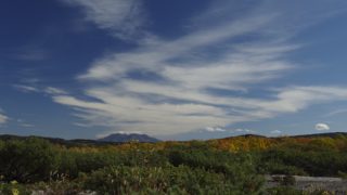 【日記】硫黄山麓から見る斜里岳 日記 - Diary - 2018.10.172020.03.31 硫黄山麓ではヤマウルシの紅葉が終わって、ミズナラを中心に黄葉がきれいになってきました。遠くには斜里岳が秋晴れの中で顔を出し、空の雲がうねって、素敵な景色を見せてくれていました。色づいた葉は落ちてもいるので、ピークを迎えた時どんな景色になるか少し心配ですが、硫黄山麓は後数日でピークを迎えますね。