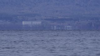 先日、見られた蜃気楼ではないかと思える現象を出来る限り、朝、見に行きます。風が無い時の方が対岸が反転した景色がよく見られるのですが、湖面全体が静かなので、蜃気楼なのかどうか分からなくなります。波があるときの方がいいのですが、風が強いと対岸の反転しか景色もあまりきれいに反転してくれません。今朝は風も吹き、湖面全体が波打っていて、肉眼では反転している様子が分かりませんでしたが、望遠で、分かりやすい建物を切り撮ってみると、本当に少しだけ景色が反転していました。こうなってくると、多分、蜃気楼だと思うのですが…。湖が暖かく、冷たい風が吹くときだけ、この蜃気楼が見られるということは、冬が深まると見られなくなってしまいます。月末になると、気温が一気に下がり始めるようなので、その時には期待したいですね。
