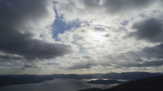 We don’t have much snow yet so I went up Mt. Mokoto to check how much snow is there. It snowed more than low land, but we cannot still enjoy snowshoeing. Stone pine already branches down, making walking hard, so I came back just after seeing Lake Kussharo. It was very cold but clouds like spring spread out in the sky.