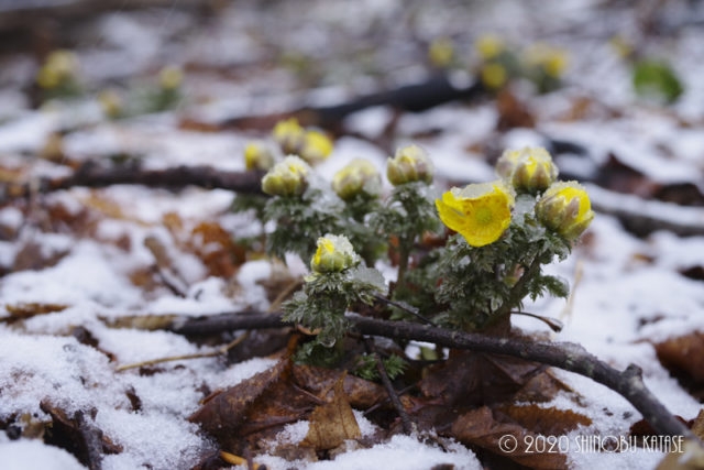 【日記】フクジュソウが雪に覆われました 日記 - Diary - 2020.04.022020.04.25 一面を薄っすらと覆う雪が降りました。天気が曇りのときは咲いている花も萎んでしまうのですが、一輪だけ花を開いているのを見つけました。雪を被っているので、今にも押しつぶされてしまいそうです。でも雪は深く積もることは無かったので、つぶされることなく済んでいたと思います。ただ雪に当たると花びらが焼けてしまうので、これからは少し茶色になるかもしれませんね。