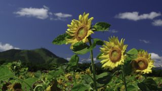 ひまわりはまるで笑顔を振りまいているかのように、元気な姿を見せてくれます。2017年は天候不順で花が咲いたとたんに大雨でなぎ倒されてしまいお花畑を見ることができませんでした。