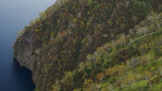 山の紅葉は標高が高いところから低いところへと移り変わっていくのですが、摩周外輪山では、湖面からの上昇気流や下降していく風にさらされることが多いためか、内壁全体が一気に色づいていって、すぐに葉が散っていってしまうイメージがあります。
