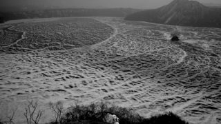 この先、何度この結氷した摩周湖を見ることができるのでしょうか。世界的な温暖化のせいなのか、気象異常のせいなのか、ただただそういう周期だったのか。2013年から5年ぶりの全面結氷となった摩周湖。解氷を目前にして、1人佇みながらしみじみと実感していました。そこで、どうせならどっしりとした全面結氷した摩周湖を表現したいなぁと、ちょうど空全体を霞が覆っていて、光もほんわかといい感じだったので、摩周湖のいつもの姿をモノクロで収めてみました。